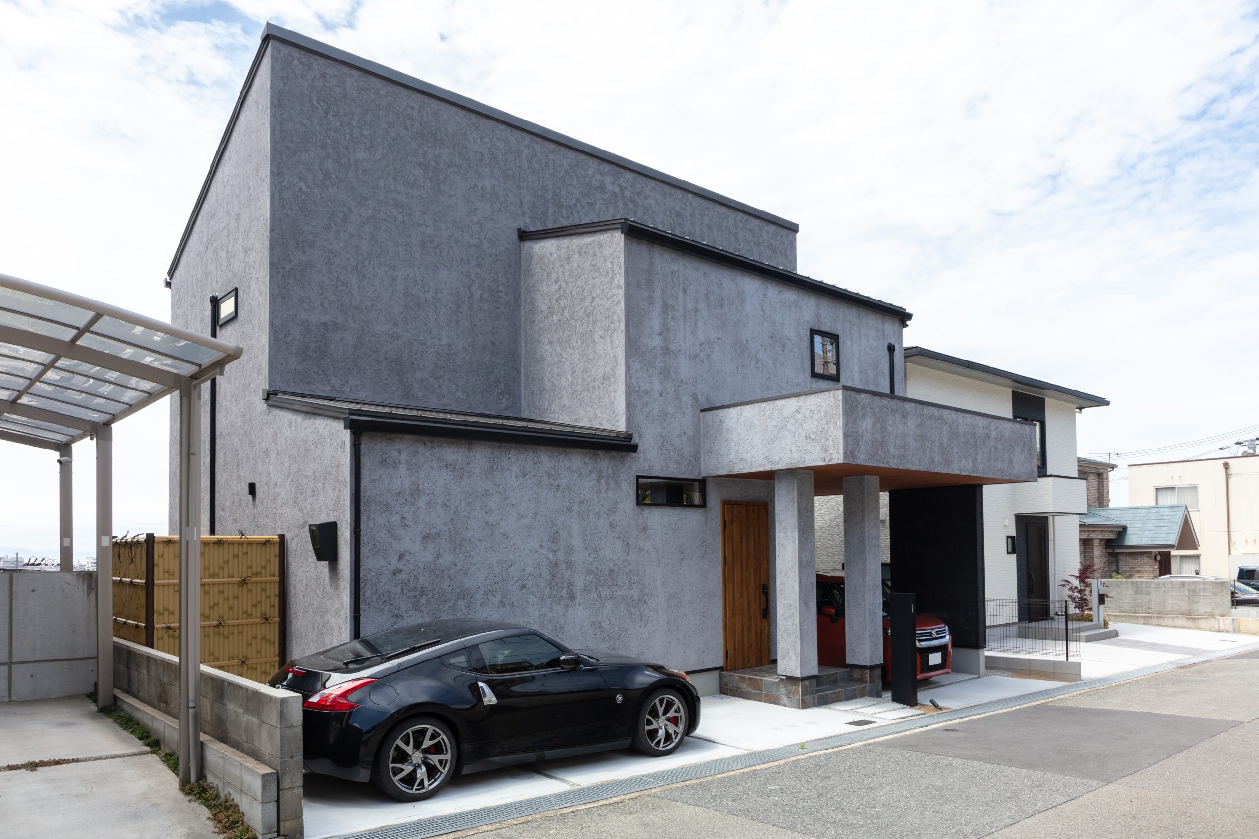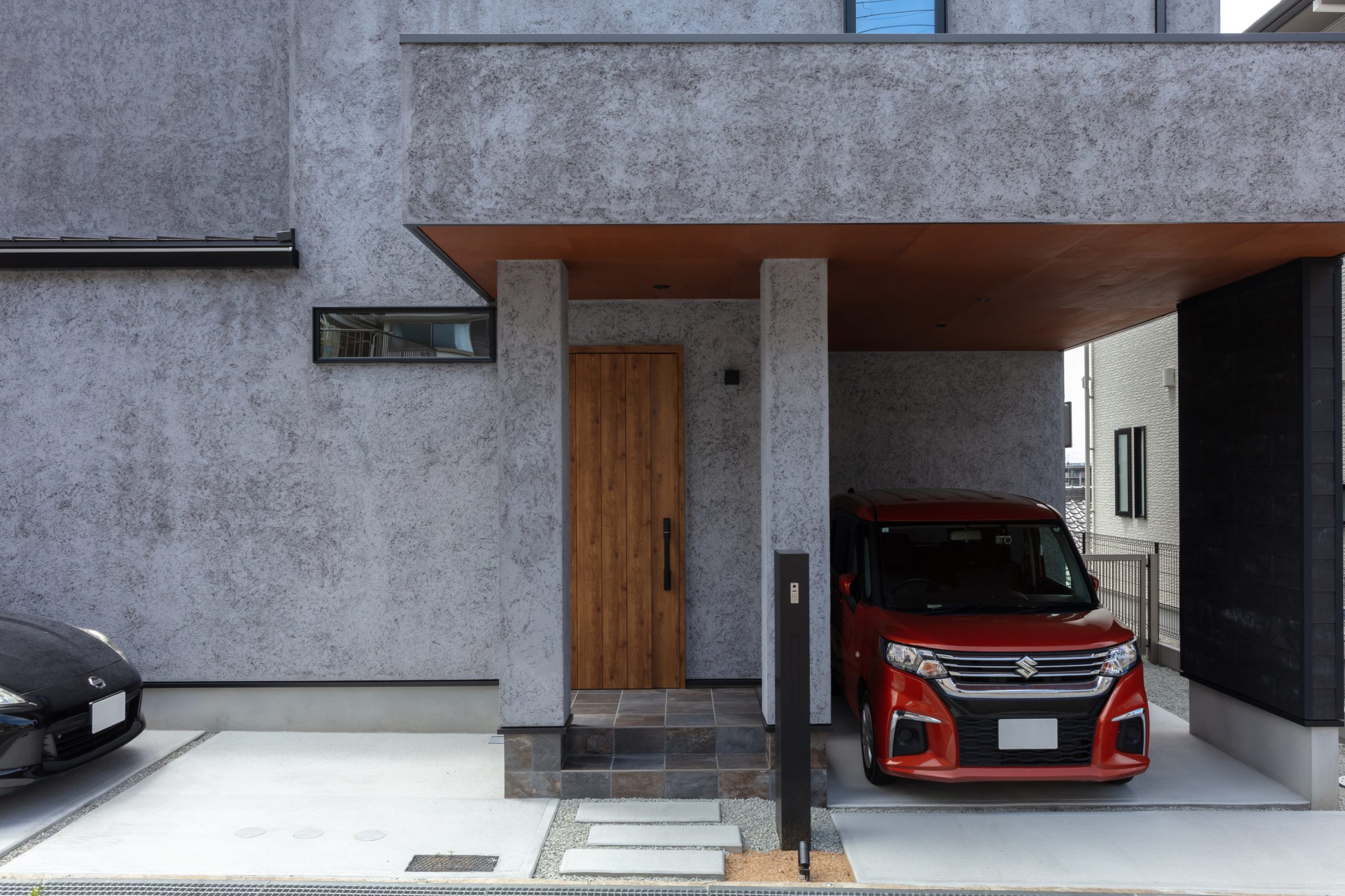 外部はメンテナンスフリーな「そとん壁」を使用し、ガレージにはアクセントでSOLIDを使用しました。