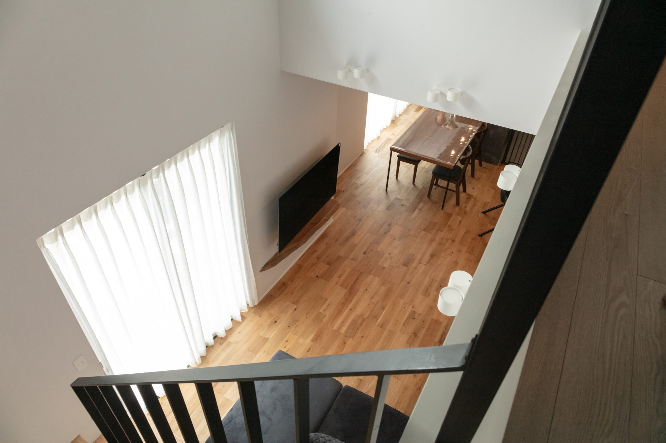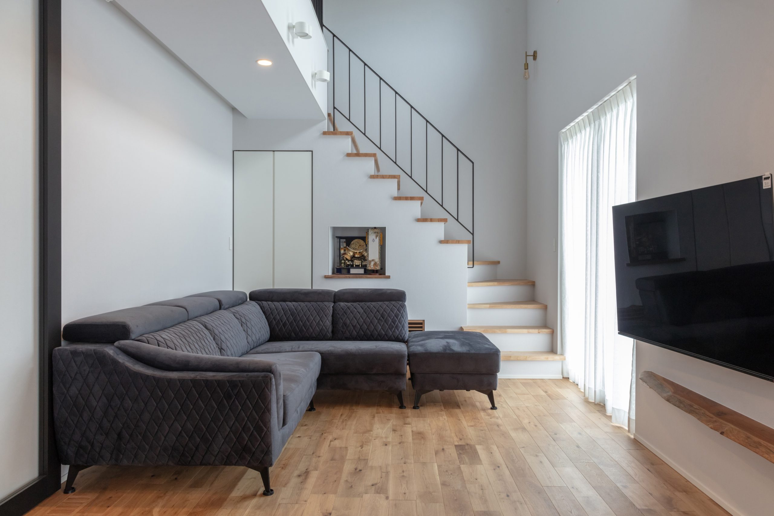 リビングイン階段で2階と1階の仕切りがありませんが高断熱、高気密の仕様により家中快適にお過ごしいただけます。
