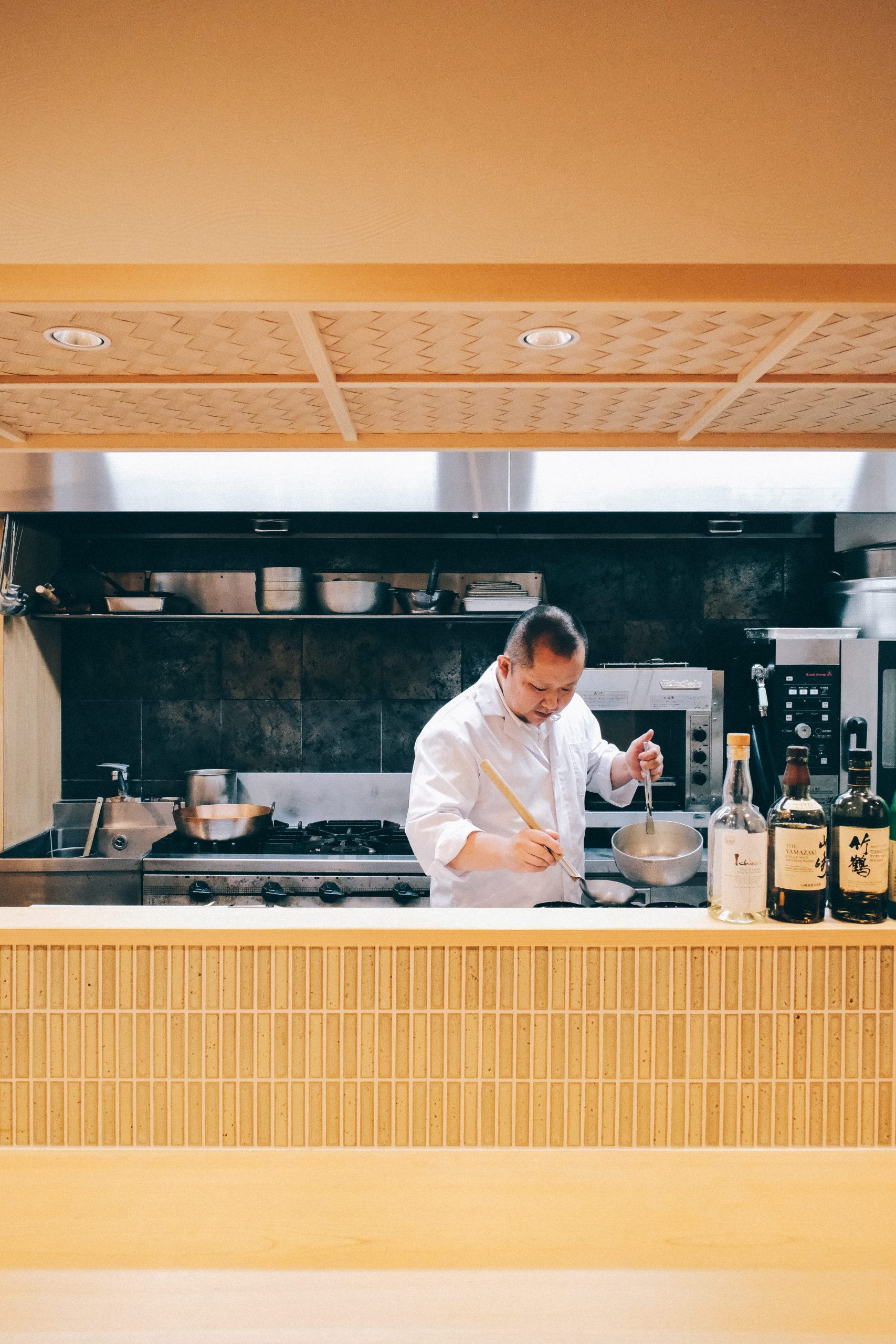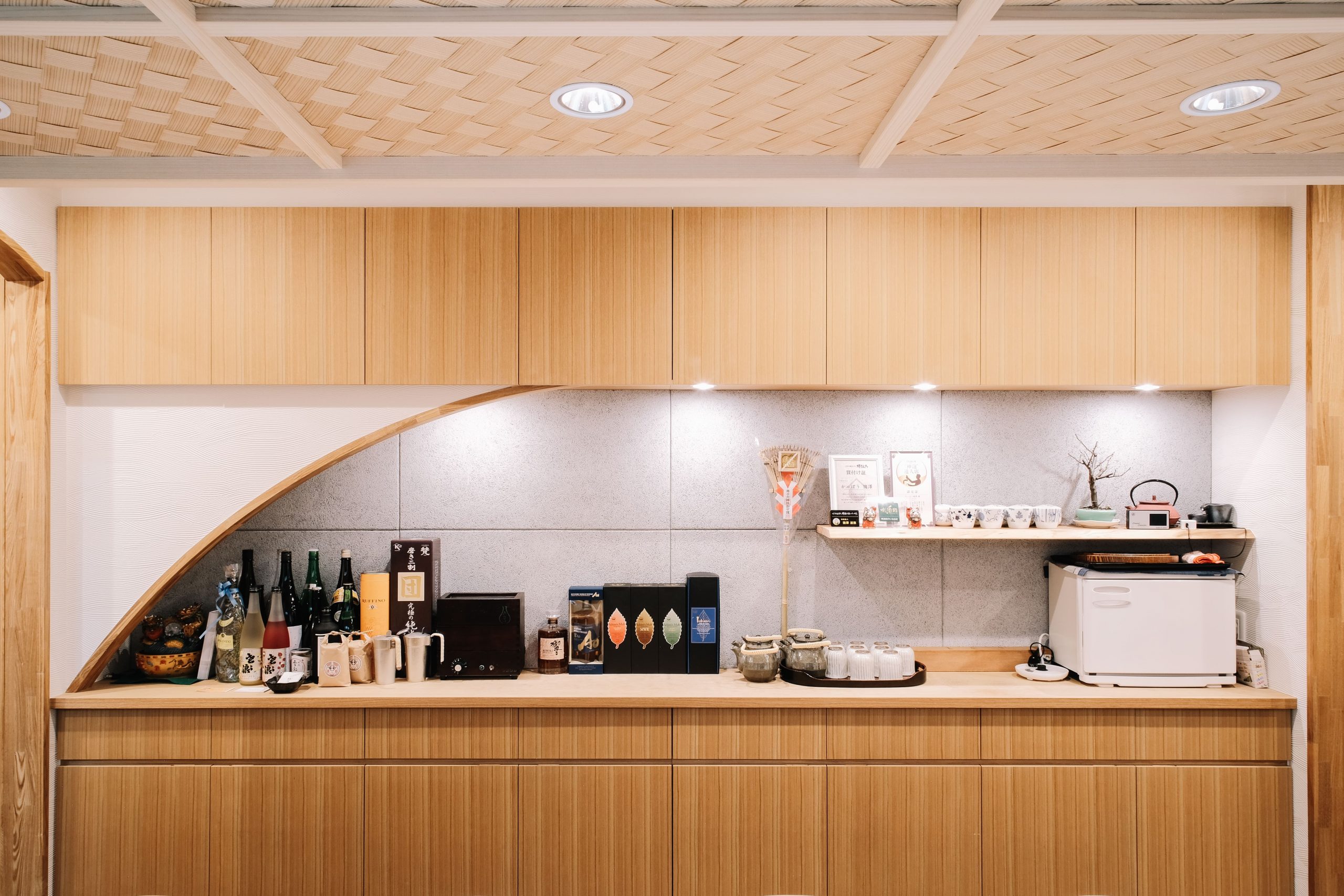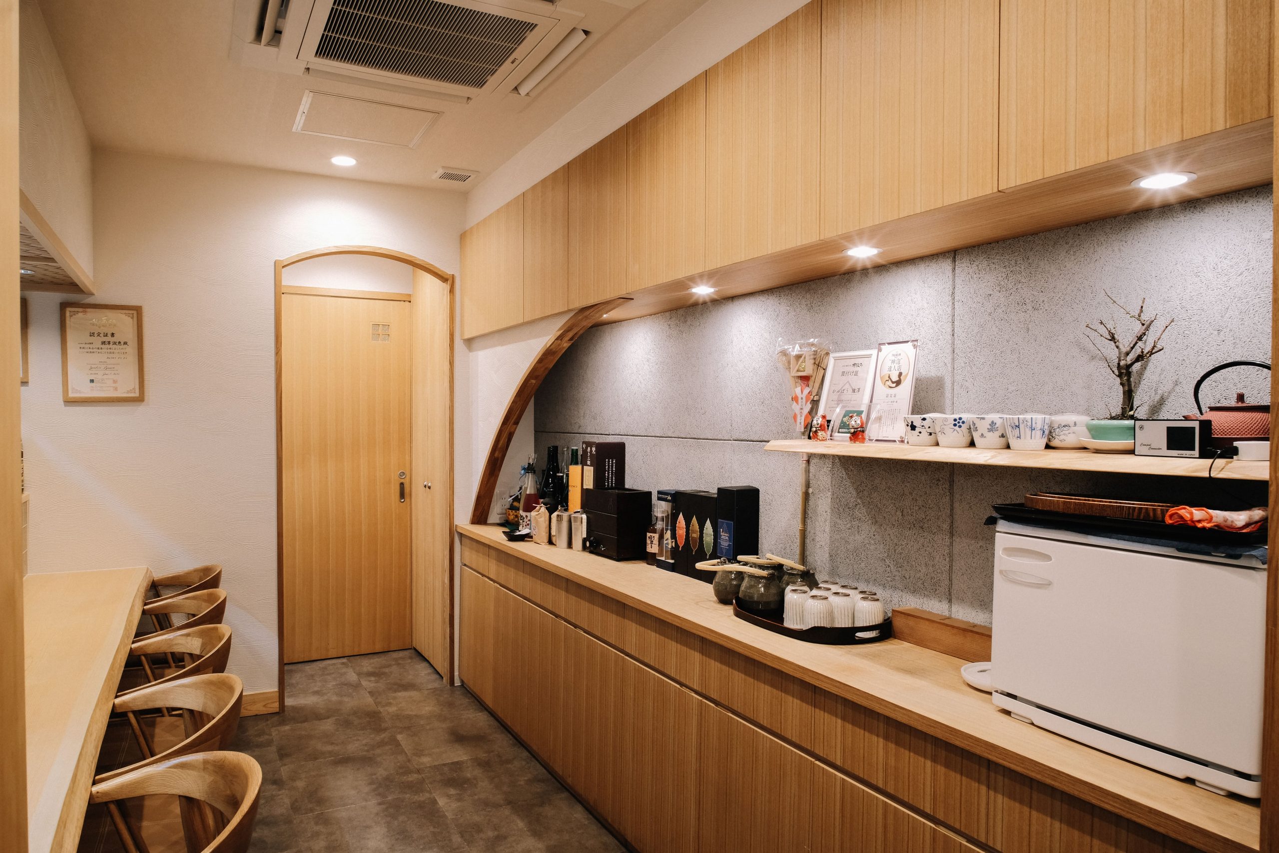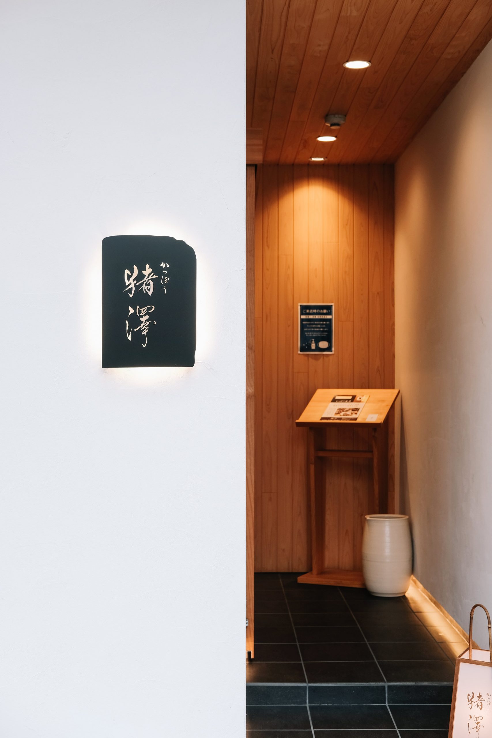 オーナ様と共に目指したのは伝統的”和職”の技術の中にも遊び心を。ヒノキの天然木と漆喰を使用した奥行きのあるエントランスから店内に入ると、天然木をふんだんに使った温かみのある空間がもてなしてくれます。伝統工芸の”組子細工の欄間”からこぼれる灯りがお料理とお酒の演出してくれています