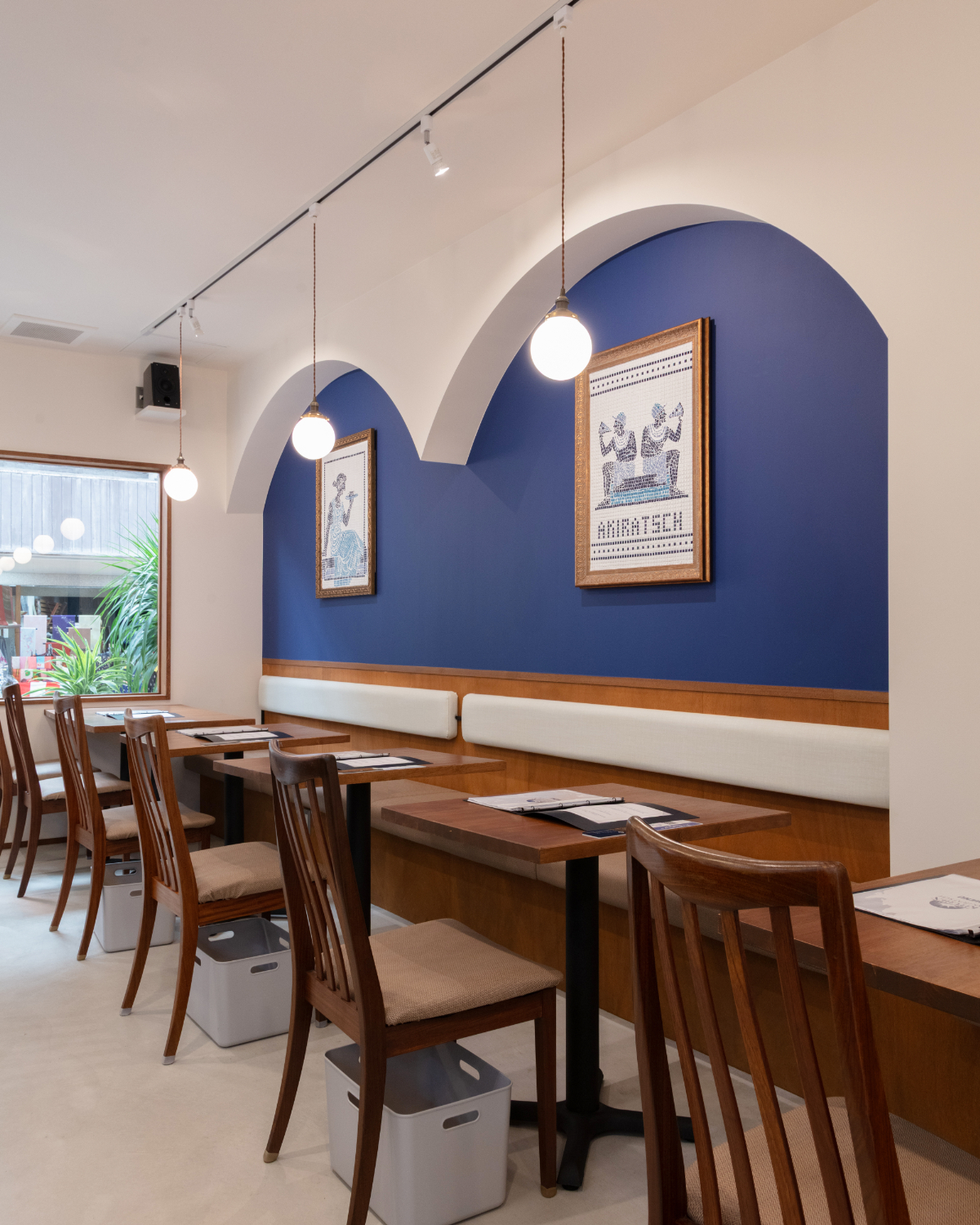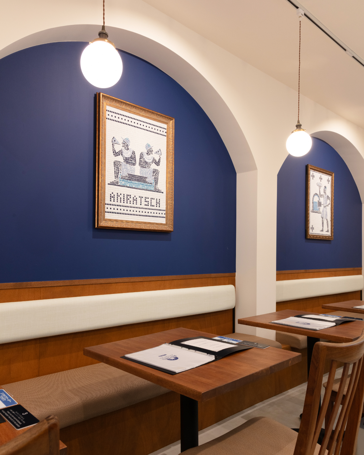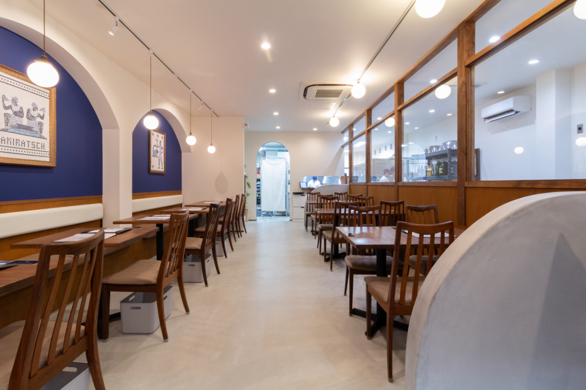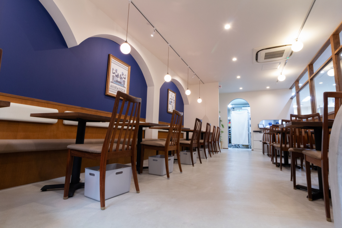どこか地中海のレストランを連想させるような落ち着きと高級感のある空間の仕上がりとなりました。