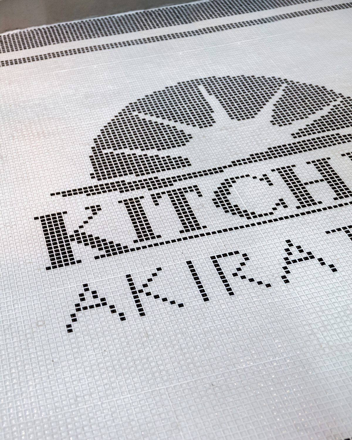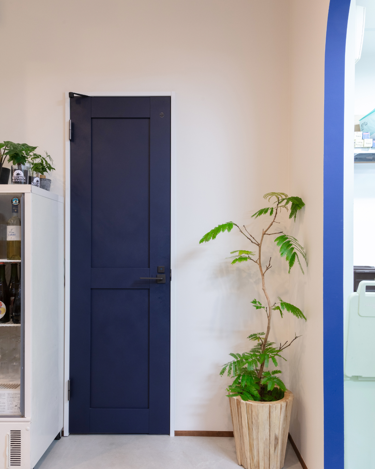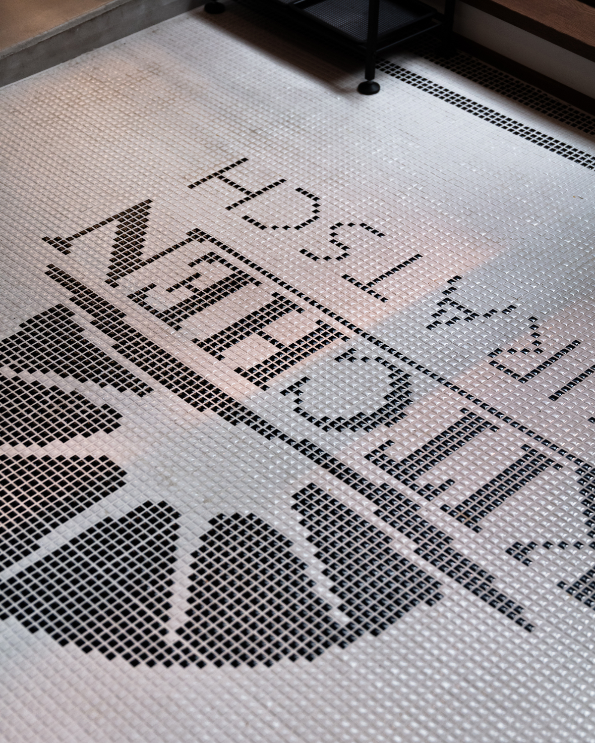オーナー様こだわりのアンティークドアと店内入口にはインパクトのあるロゴ入りタイルがお客様をお出迎えいたします。