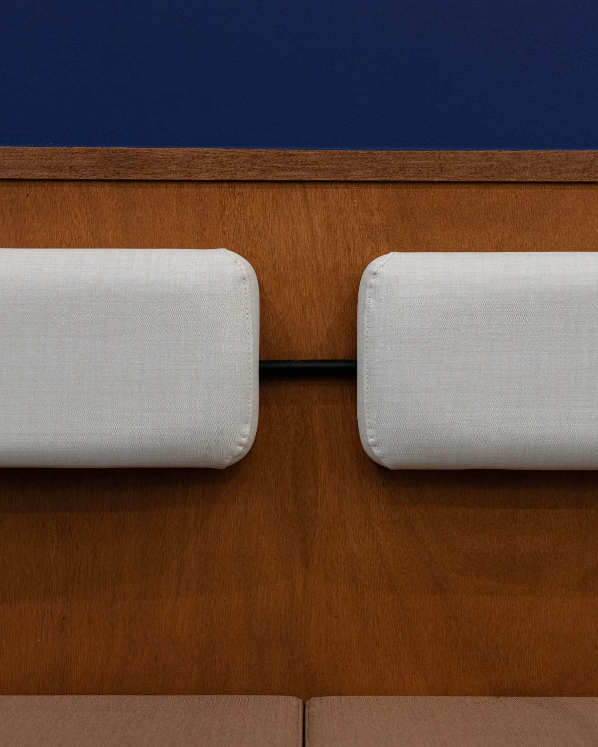 エントランスのタイルからつながる青をアクセントにした客席は、