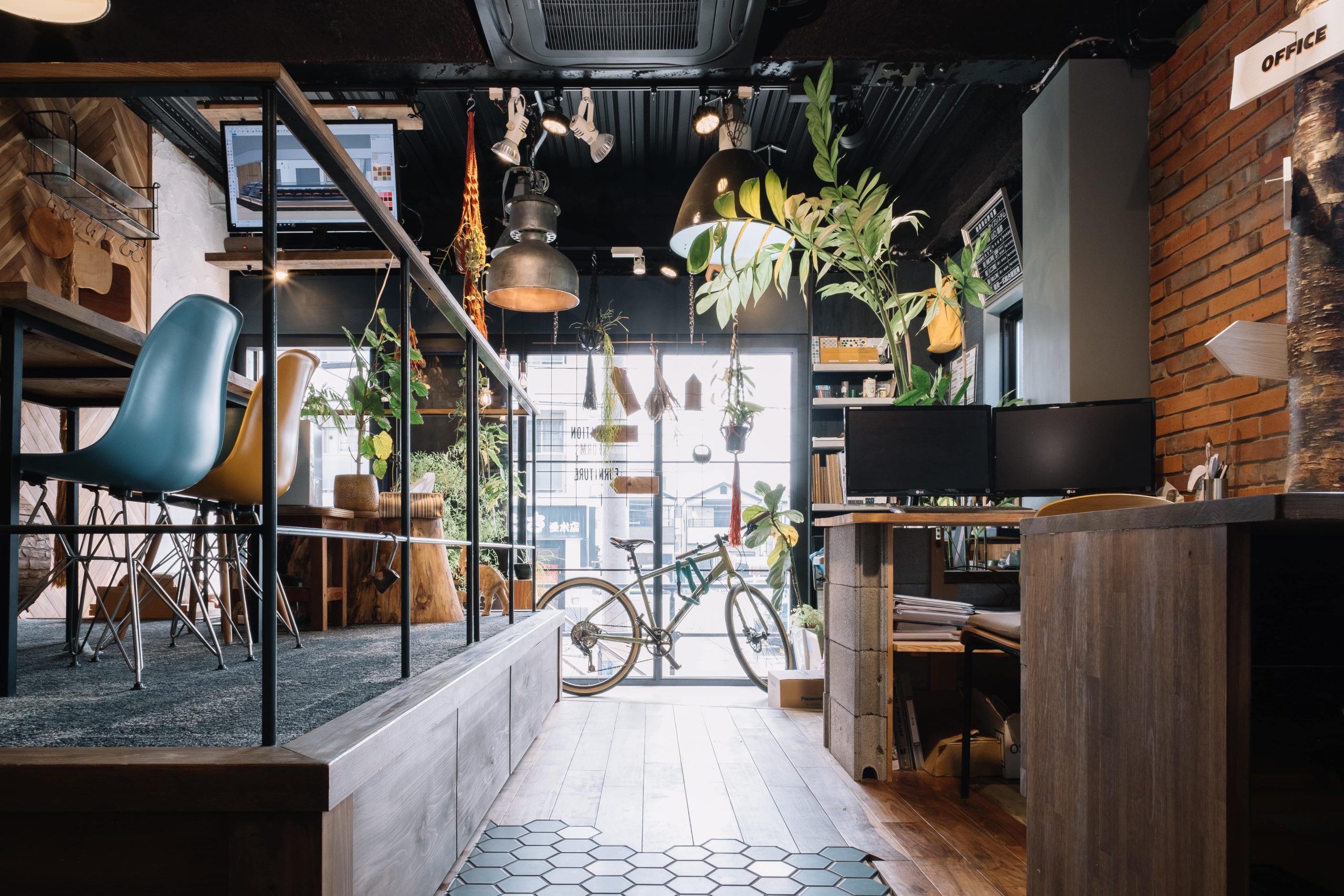 毎日を過ごす空間に少しのゆとりと心躍るデザインを取り込み、仕事の効率化やスタッフのコミュニケーションを意識しました。スキップフロアーでの高低差は空間の奥行きを演出してくれます。